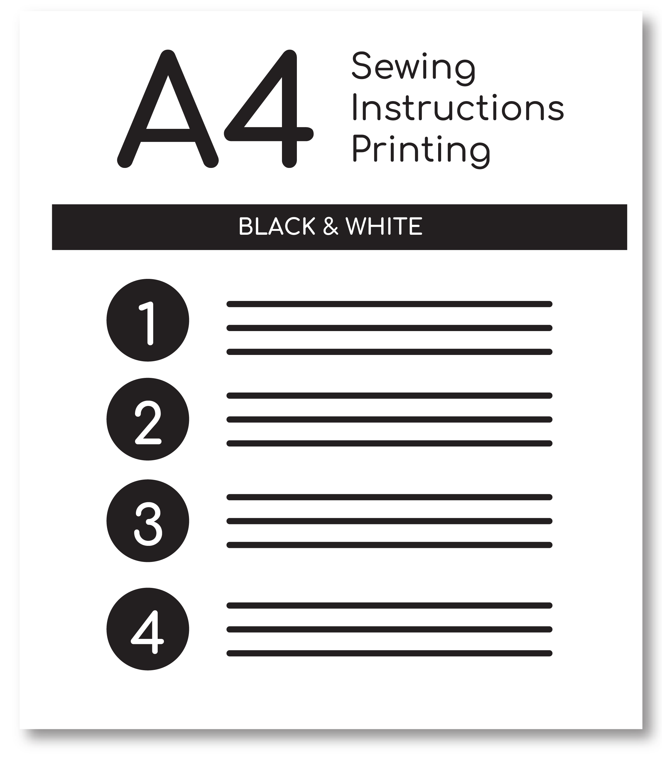 Your sewing instructions will be printed on standard A4 printer paper, and they will be scaled to fit (unless you tell us otherwise).